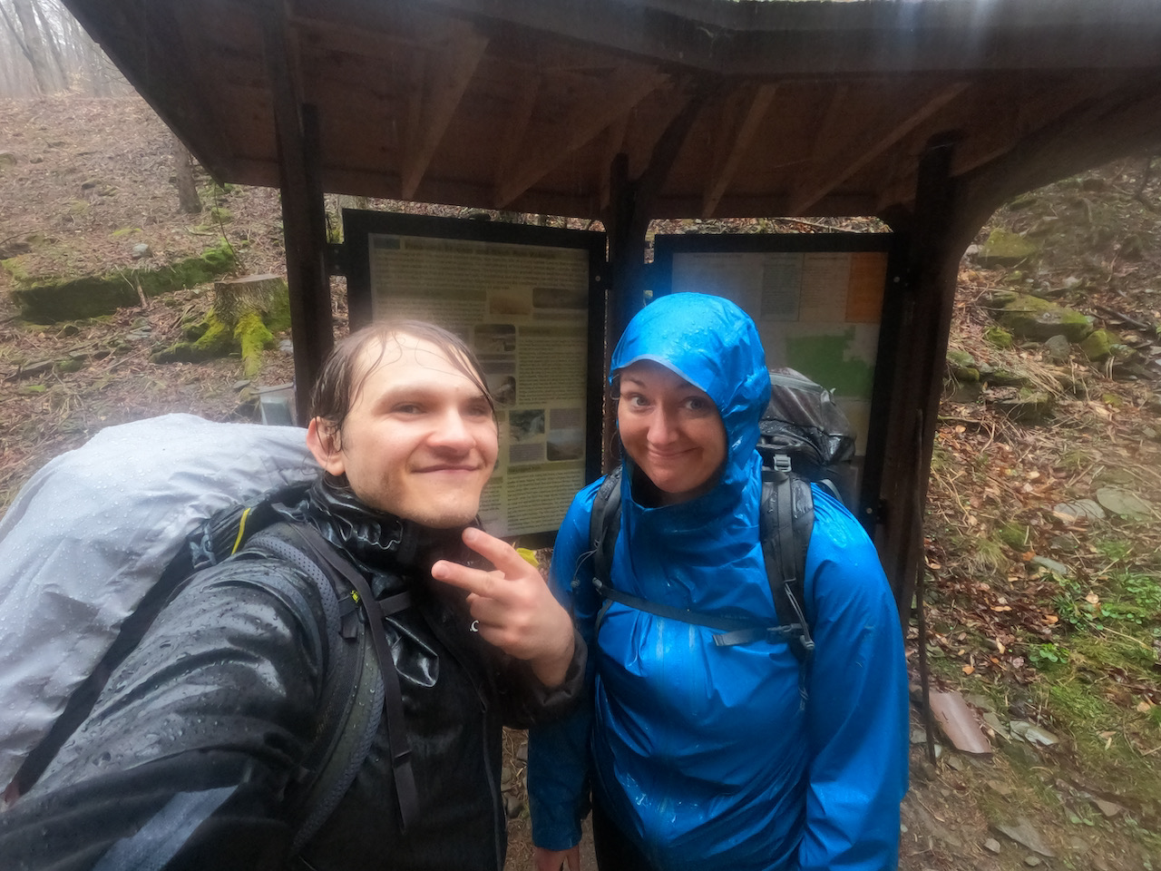 We got to the Sprout Point Vista shelter, which has a primitive campsite nearby. We set up our tent and called it a night. Strangely enough, my tongue swelled up that night and got worse while in the tent. I could barely talk, and I've never had anything like that happen before. We think it's something I ate, but I didn't eat anything unusual that may have caused it, so who knows. I took some allergy medicine and went to sleep, and it was, thankfully, much better in the morning.