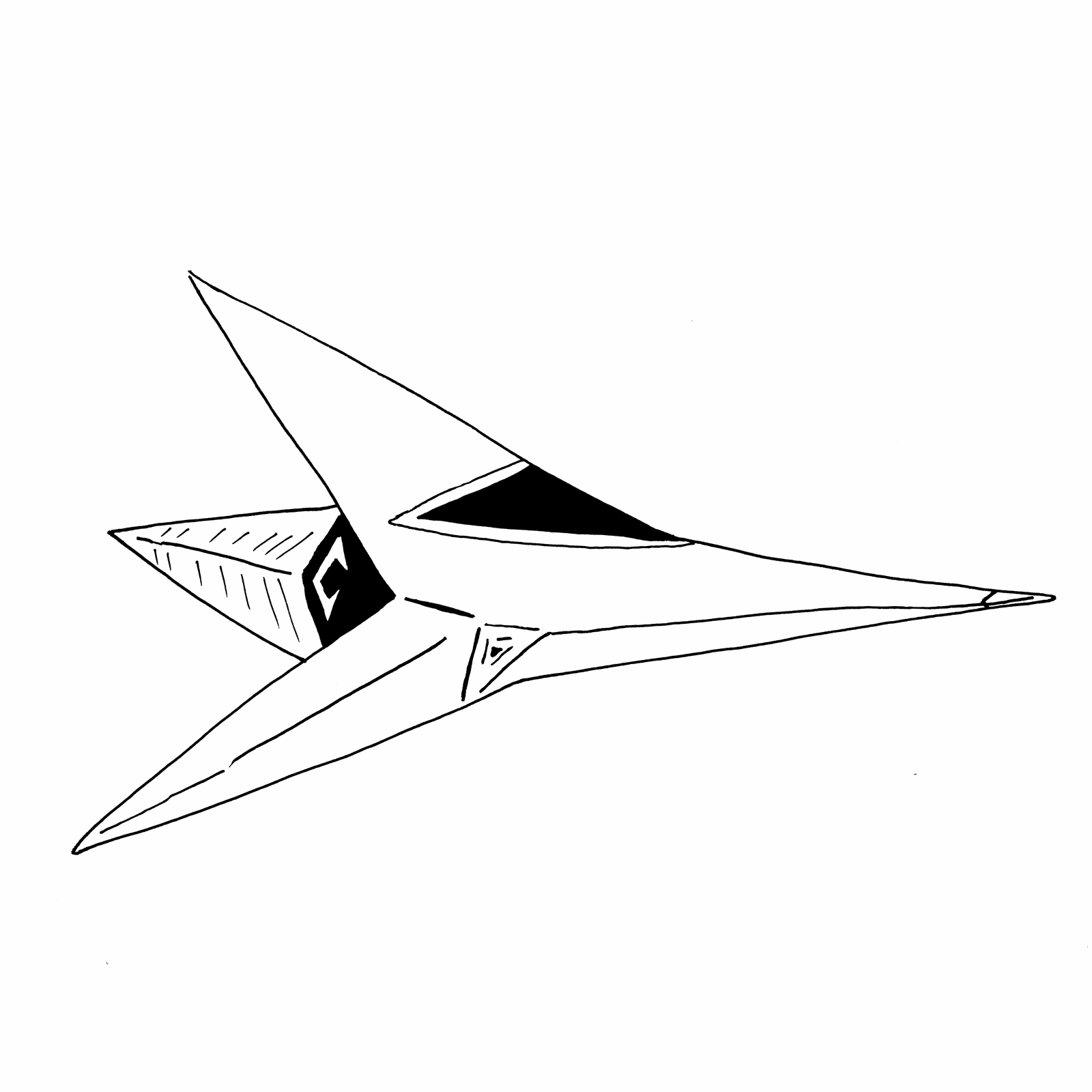 My approach was simple: black and white line art. It was a design exercise to me and less about having super polished finished pieces of art. I tried to use basic shapes to build the ships. When I was in the groove, I'd draw four or five in a day.
