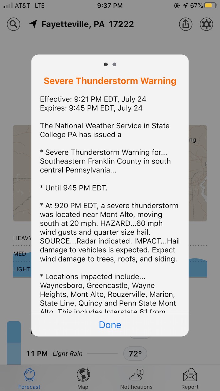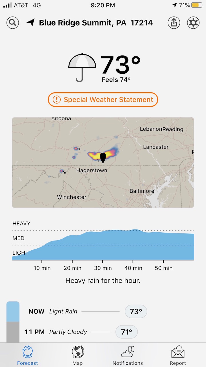At 9:20pm I heard thunder. I hadn't set up the rain cover for the tent and left my gear outside to air out. I turned on my phone and checked the forecast.