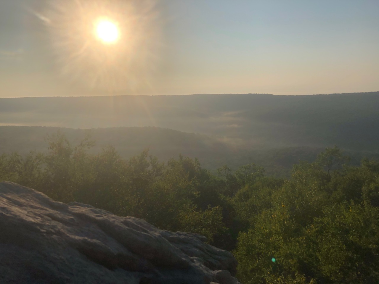 I made solid time, refreshed and invigorated by the cool morning air. I returned to Chimney Rocks with the sun already in the sky. A fellow hiker who stayed at the shelter was sitting on one of the rocks making oatmeal while watching the sun rise.
